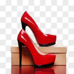 红色亮面高跟鞋和鞋盒