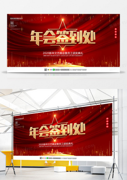 红色创意年会签到处展板设计