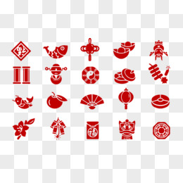 一组卡通新年通用元素套图免抠之红灯笼元素