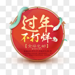 3D立体新年红色蛇与红色中式卷轴免抠元素