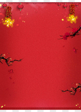 绘画风新年元素带金色祥云的红色花朵免抠元素