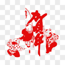 卡通风新年元素三个花朵图案中国灯笼免抠元素