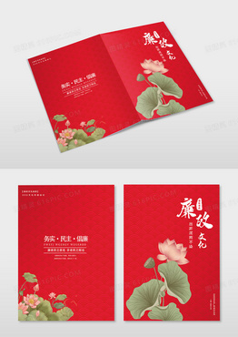 中国风绿色荷叶红色荷花水墨鱼莲蓬