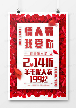 浪漫情人节情侣玫瑰花玫瑰红色花瓣促销优惠情人节海报