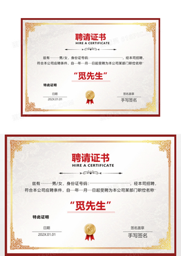 红色花纹荣誉证书聘请证书模板设计