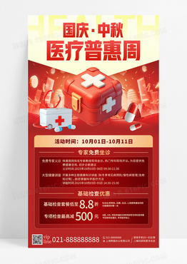 红色简约国庆中秋双节医疗普惠周手机宣传海报