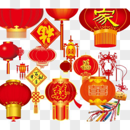 灯笼鞭炮金元宝铜钱等设计矢量素