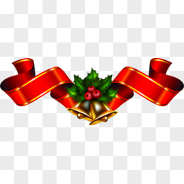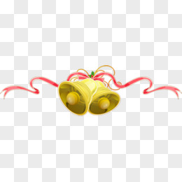 金色铃铛 红色蝴蝶结 绿色叶子png素材