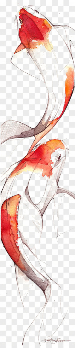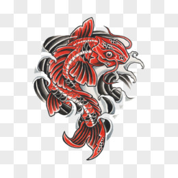 扁平线稿红色锦鲤免抠装饰矢量元素