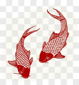 卡通矢量红色剪纸动物鲤鱼锦鲤元素
