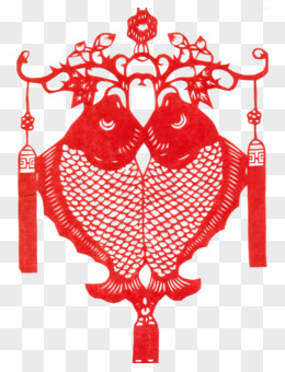 手绘卡通鲤鱼春节剪纸免抠元素