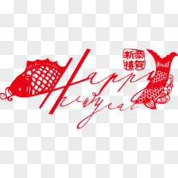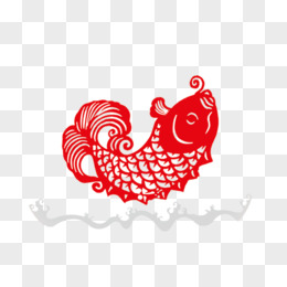 剪纸风小孩抱着红色大鲤鱼免抠元素