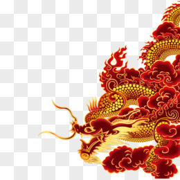 手绘红色剪纸中国龙尾剪纸免抠元素