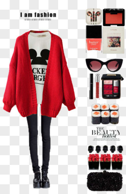 红色毛衣外套和黑色裤子
