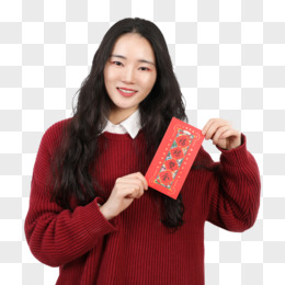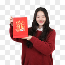 红色毛衣的女子拿着新年台历日历免抠实拍元素