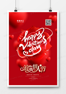 红色爱心玫瑰海报背景七夕浪漫情人节