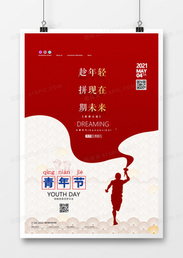 五四青年节青年卡通红色蓝色人物手绘PNG元素
