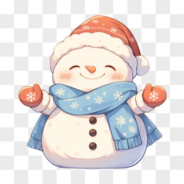 卡通冬季一个戴红色圣诞帽的雪人免抠元素