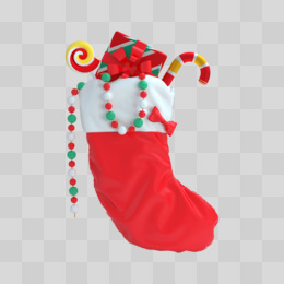 红色C4D圣诞袜圣诞礼盒元素