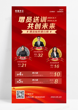 红色条纹大气简约金融保险排行榜业绩表彰喜报红金人物手机海报