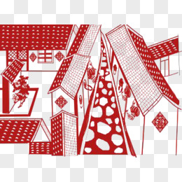 红色房子剪纸