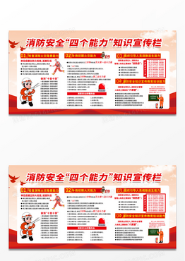 简约红色消防安全四个能力知识宣传栏四个能力建设展板消防安全四个能力建设