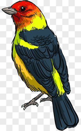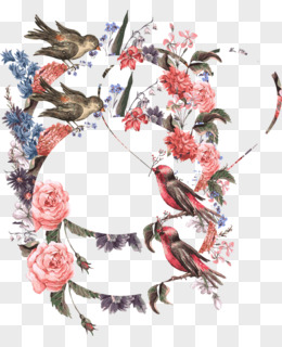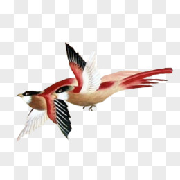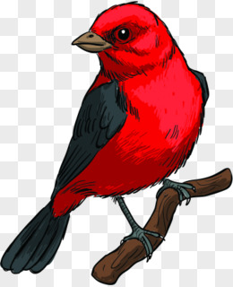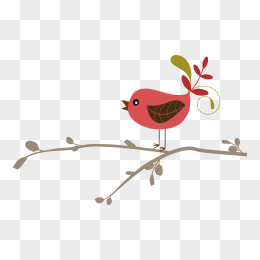 水彩画一只杜鹃鸟站在开满红色花朵的树枝上免抠元素
