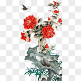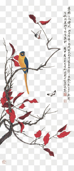 手绘国画红鸟