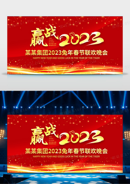 大气红色背景炫酷光效兔年春节新春大吉春节晚会背景板2023年会