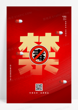 简约红色背景国际禁毒日宣传海报