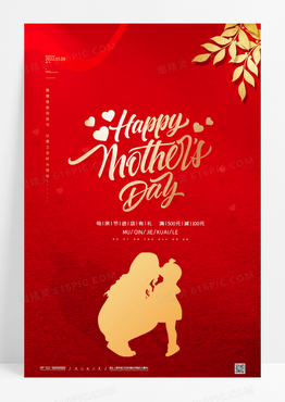 红色英文母亲节宣传海报