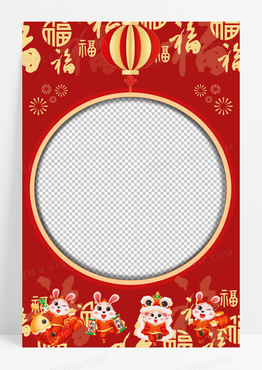 红色卡通喜庆喜迎春节2023兔年新年拍照框
