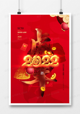 红色喜庆烫金中国风2022虎年海报设计