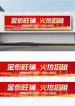 大气红色时尚创意科技风旺铺招商展板条幅横幅广告招商招租