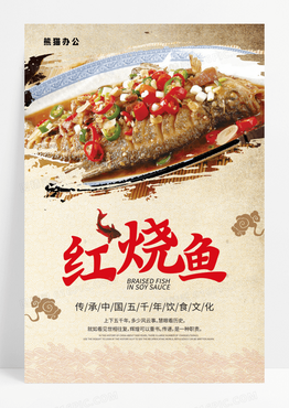 简约清新中国风红烧鱼美食海报红烧鱼海报