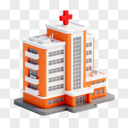 3D卡通屋顶有红十字的医院大楼免抠元素