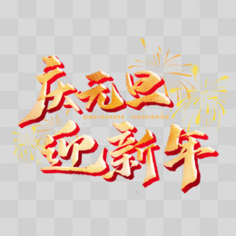 庆元旦迎新年金色毛笔字