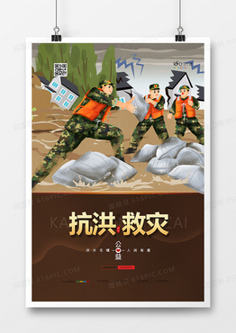 简约插画抗洪救灾洪水救援抗洪公益海报