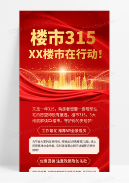 大气红金房地产楼市315在行动长图手机海报