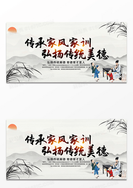 水墨古风传承家风家训弘扬传统美德展板家风家训展板