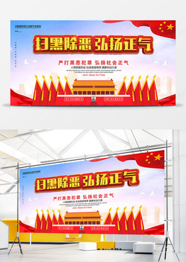 红色大气扫黑除恶弘扬正气党政展板