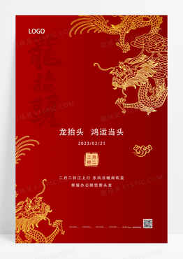 红色简约龙抬头鸿运当头二月二龙抬头海报