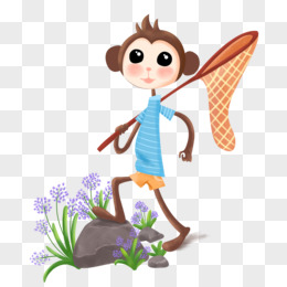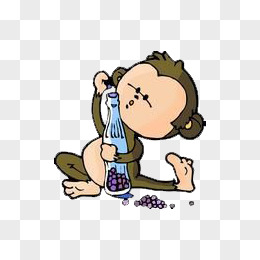 手绘水彩风可爱娃娃扛着桃子树枝元素