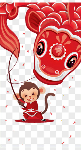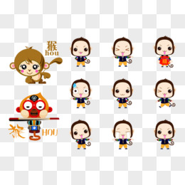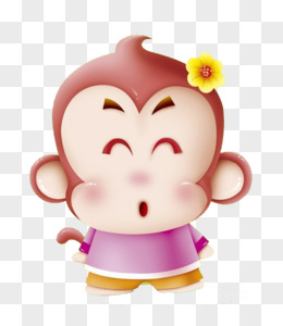 插画猴子戴着生日帽拿着彩色气球免抠元素