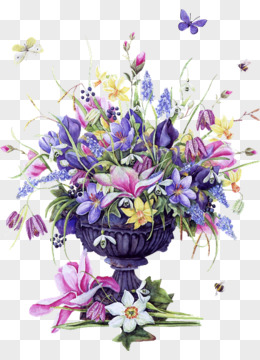手绘花饰图标仙境素材 花束 花朵 蝴蝶 唯美 紫色花 森系复古 花簇