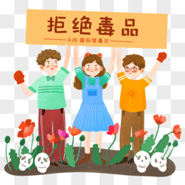 手绘卡通年轻人高举拒接毒品大旗插画免抠元素