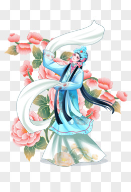 手绘国潮精致花旦和花合成素材