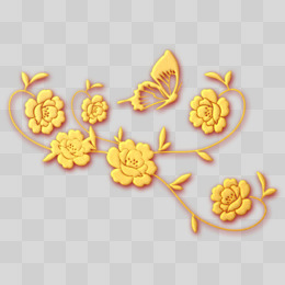 金色浮雕蝴蝶牡丹花纹装饰元素