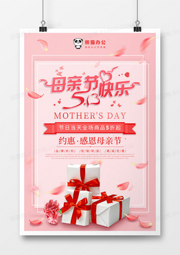 唯美粉色母亲节快乐节日海报设计