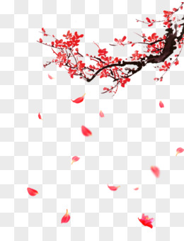 古风红色梅花和漂落的花瓣